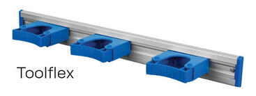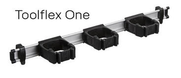 Das Toolflex-System ist eine Serie einfacher, flexibler Gerätehalter, die im Garten, Garage, Keller, Werkstatt, Küche, etc. für Ordnung sorgen. Geräte mit Stiel wie z.B. Besen, Schaufel, Werkzeug etc. können mit einem einfachen Handgriff aufgehängt und abgenommen werden.